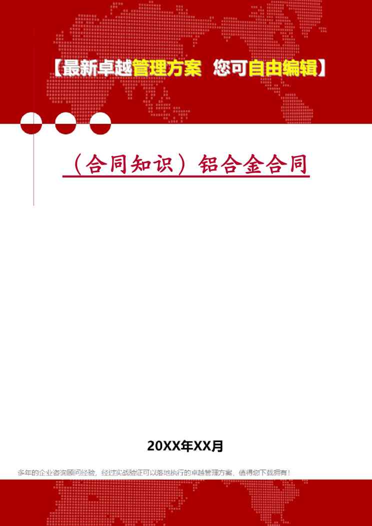 不久前,最新文档《(合同知识)铝合金合同》全文正式在本站发布,感兴趣的用户可以下载阅读。 声明:本站所有文章,如无特殊说明或标注,均为本站原创发布。任何个人或组织,在未征得本站同意时,禁止复制、盗用、采集、发布本站内容到任何网站、书籍等各类媒体平台。如若本站内容侵犯了原著者的合法权益,可联系我们进行处理。