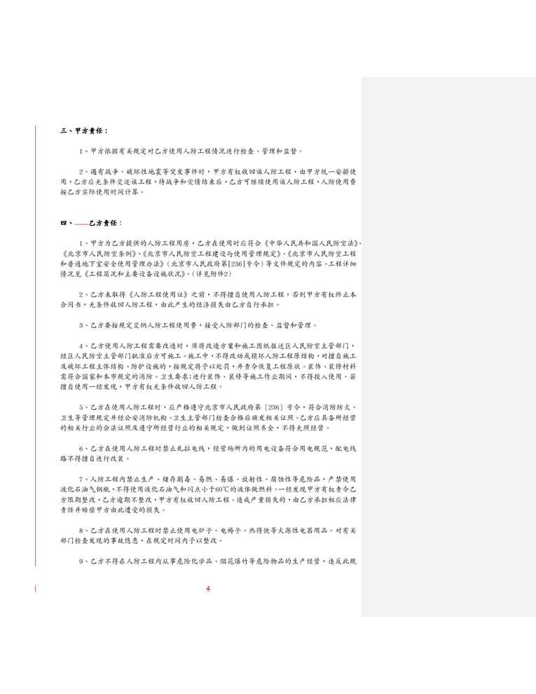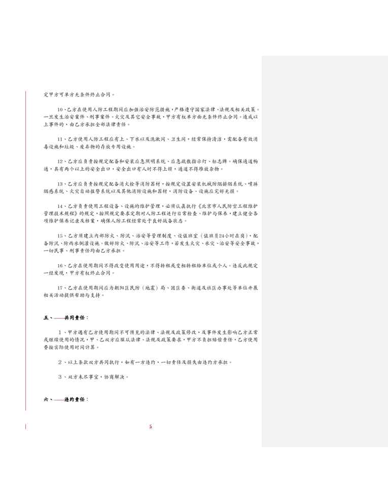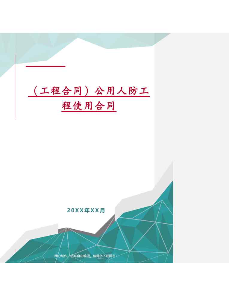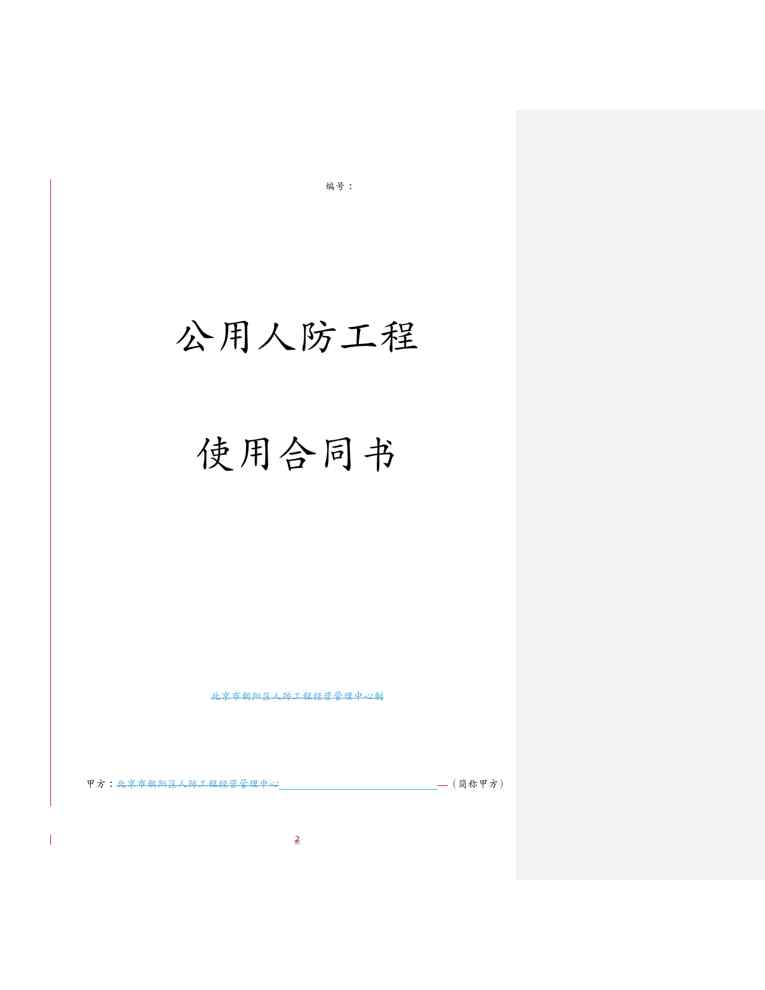 本站资深用户发布了最新的《(工程合同)公用人防工程使用合同》文档,以下内容为预览,详细内容可下载阅读。 声明:本站所有文章,如无特殊说明或标注,均为本站原创发布。任何个人或组织,在未征得本站同意时,禁止复制、盗用、采集、发布本站内容到任何网站、书籍等各类媒体平台。如若本站内容侵犯了原著者的合法权益,可联系我们进行处理。