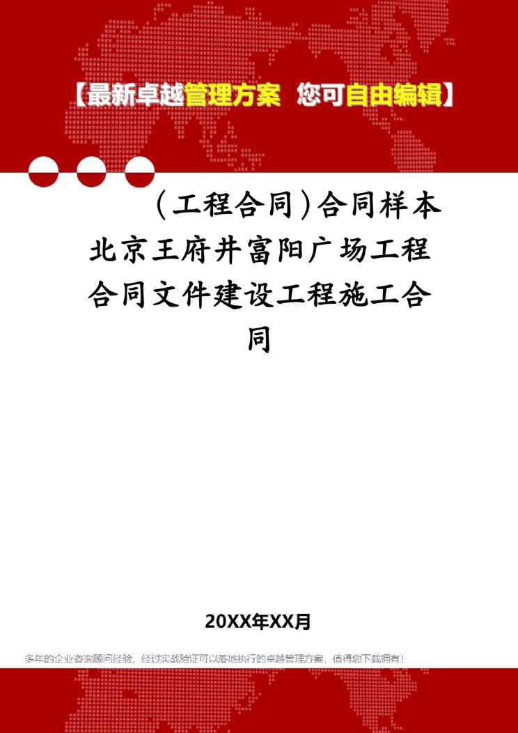 本站正式发布了《(工程合同)合同样本北京王府井富阳广场工程合同文件建设工程施工合同》文档,文档详细内容可下载阅读。 声明:本站所有文章,如无特殊说明或标注,均为本站原创发布。任何个人或组织,在未征得本站同意时,禁止复制、盗用、采集、发布本站内容到任何网站、书籍等各类媒体平台。如若本站内容侵犯了原著者的合法权益,可联系我们进行处理。