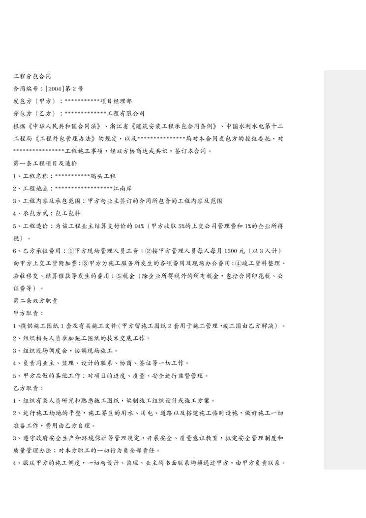 本站资深用户发布了最新的《(工程合同)工程分包合同》文档,以下内容为预览,详细内容可下载阅读。 声明:本站所有文章,如无特殊说明或标注,均为本站原创发布。任何个人或组织,在未征得本站同意时,禁止复制、盗用、采集、发布本站内容到任何网站、书籍等各类媒体平台。如若本站内容侵犯了原著者的合法权益,可联系我们进行处理。