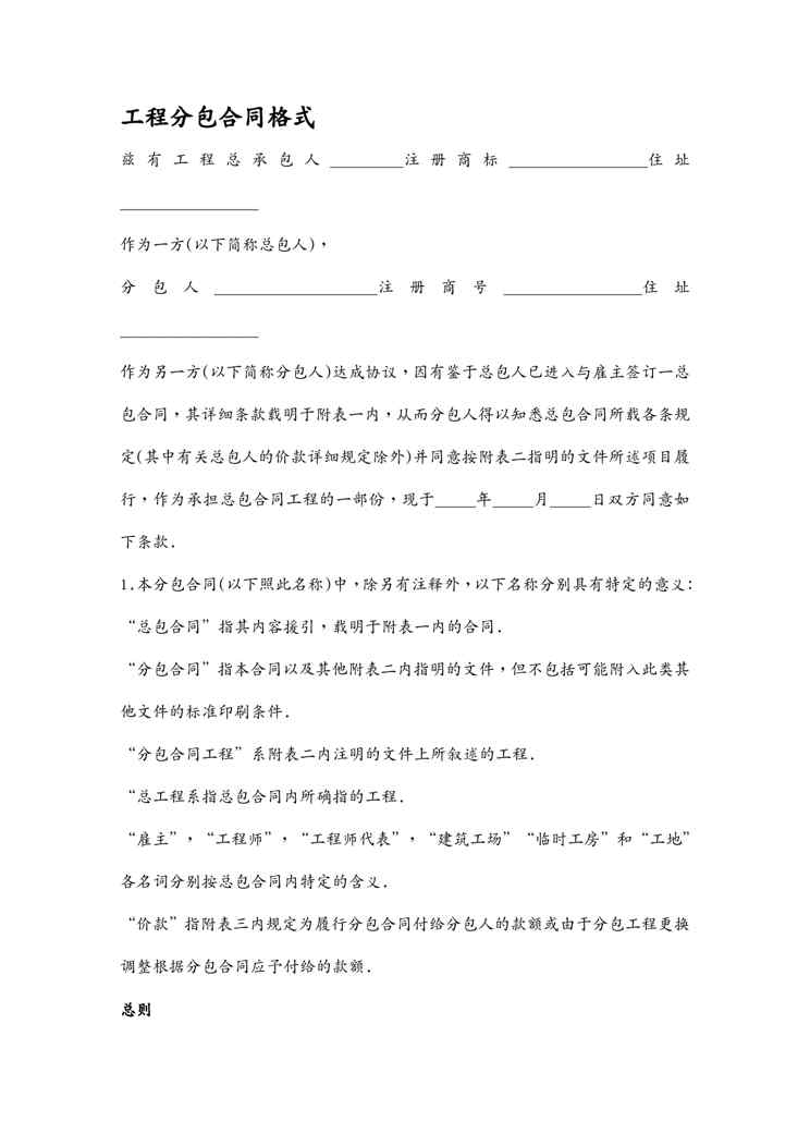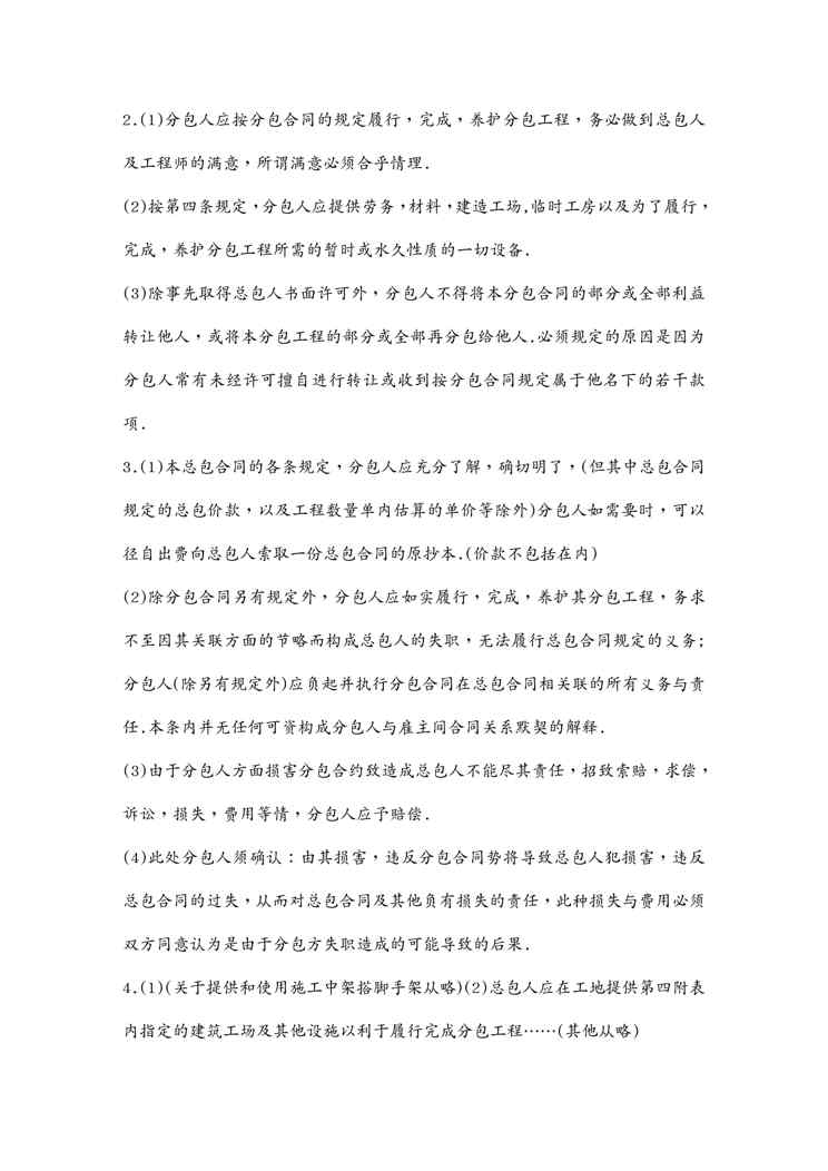 不久前,最新文档《(工程合同)工程分包合同格式》全文正式在本站发布,感兴趣的用户可以下载阅读。 声明:本站所有文章,如无特殊说明或标注,均为本站原创发布。任何个人或组织,在未征得本站同意时,禁止复制、盗用、采集、发布本站内容到任何网站、书籍等各类媒体平台。如若本站内容侵犯了原著者的合法权益,可联系我们进行处理。
