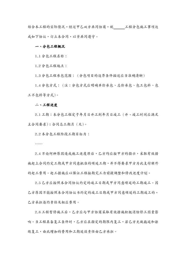 不久前,最新文档《(工程合同)工程分包合同范本》全文正式在本站发布,感兴趣的用户可以下载阅读。 声明:本站所有文章,如无特殊说明或标注,均为本站原创发布。任何个人或组织,在未征得本站同意时,禁止复制、盗用、采集、发布本站内容到任何网站、书籍等各类媒体平台。如若本站内容侵犯了原著者的合法权益,可联系我们进行处理。