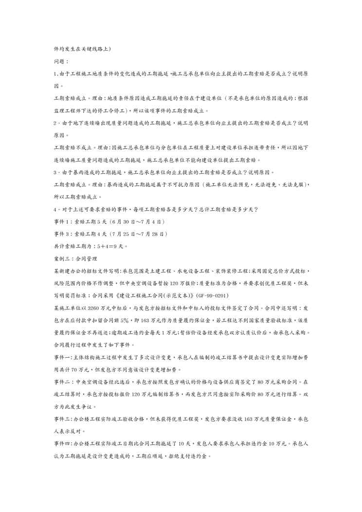 不久前,最新文档《(工程合同)工程合同管理·整理》全文正式在本站发布,感兴趣的用户可以下载阅读。 声明:本站所有文章,如无特殊说明或标注,均为本站原创发布。任何个人或组织,在未征得本站同意时,禁止复制、盗用、采集、发布本站内容到任何网站、书籍等各类媒体平台。如若本站内容侵犯了原著者的合法权益,可联系我们进行处理。