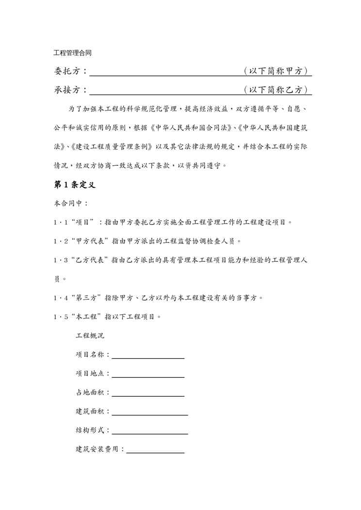 本站正式发布了《(工程合同)工程管理合同范本》文档,文档详细内容可下载阅读。 声明:本站所有文章,如无特殊说明或标注,均为本站原创发布。任何个人或组织,在未征得本站同意时,禁止复制、盗用、采集、发布本站内容到任何网站、书籍等各类媒体平台。如若本站内容侵犯了原著者的合法权益,可联系我们进行处理。