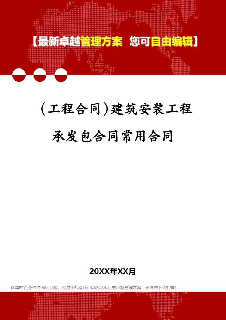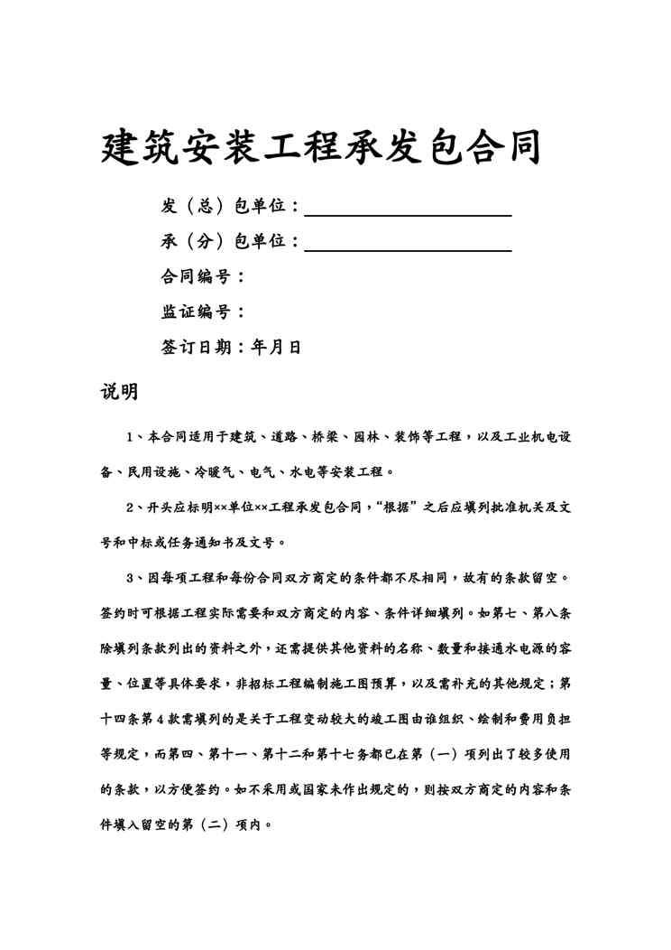 本站资深用户发布了最新的《(工程合同)建筑安装工程承发包合同常用合同》文档,以下内容为预览,详细内容可下载阅读。 声明:本站所有文章,如无特殊说明或标注,均为本站原创发布。任何个人或组织,在未征得本站同意时,禁止复制、盗用、采集、发布本站内容到任何网站、书籍等各类媒体平台。如若本站内容侵犯了原著者的合法权益,可联系我们进行处理。