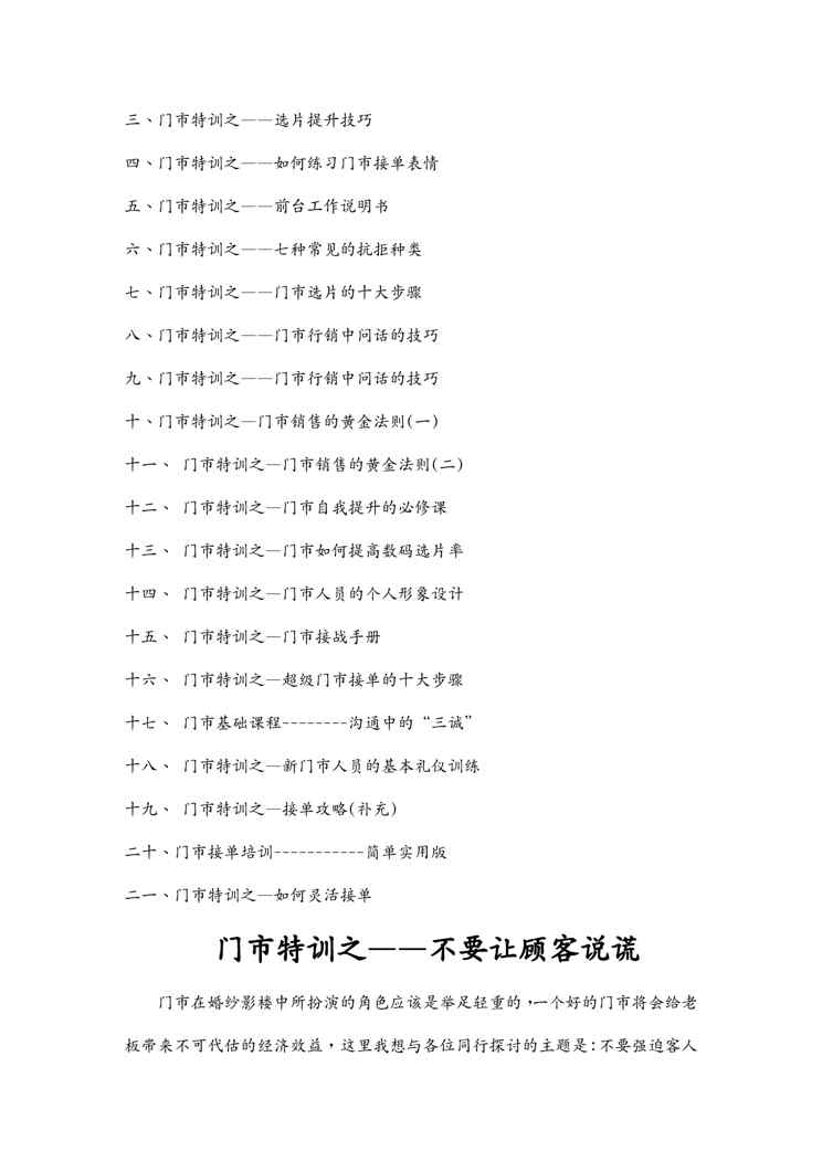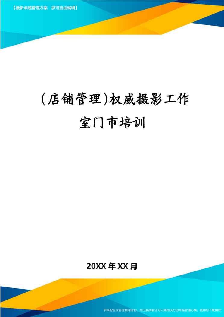 本站正式发布了《(店铺管理)权威摄影工作室门市培训》文档,文档详细内容可下载阅读。 声明:本站所有文章,如无特殊说明或标注,均为本站原创发布。任何个人或组织,在未征得本站同意时,禁止复制、盗用、采集、发布本站内容到任何网站、书籍等各类媒体平台。如若本站内容侵犯了原著者的合法权益,可联系我们进行处理。