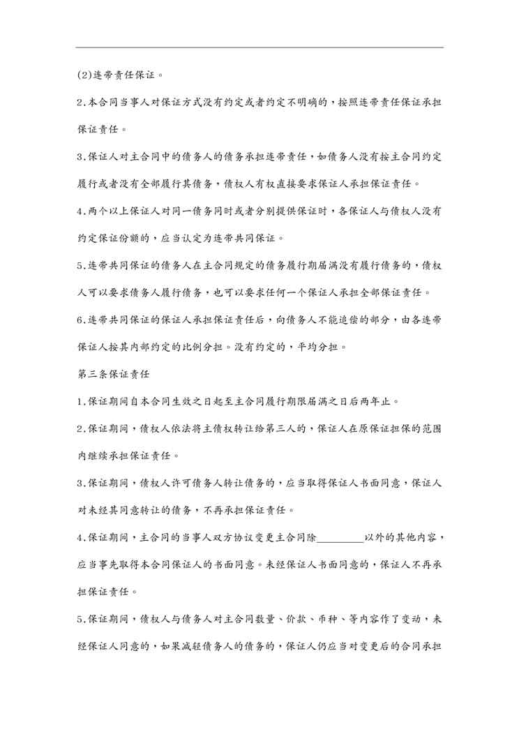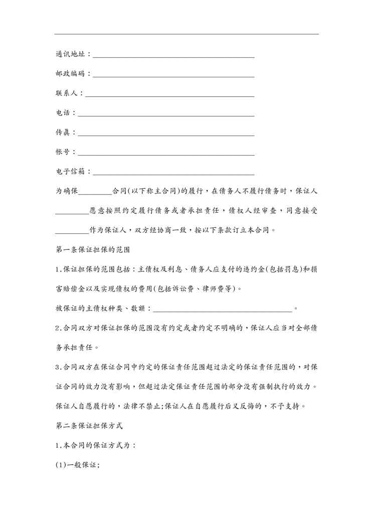本站资深用户发布了最新的《(担保合同)担保公司合同样本》文档,以下内容为预览,详细内容可下载阅读。 声明:本站所有文章,如无特殊说明或标注,均为本站原创发布。任何个人或组织,在未征得本站同意时,禁止复制、盗用、采集、发布本站内容到任何网站、书籍等各类媒体平台。如若本站内容侵犯了原著者的合法权益,可联系我们进行处理。