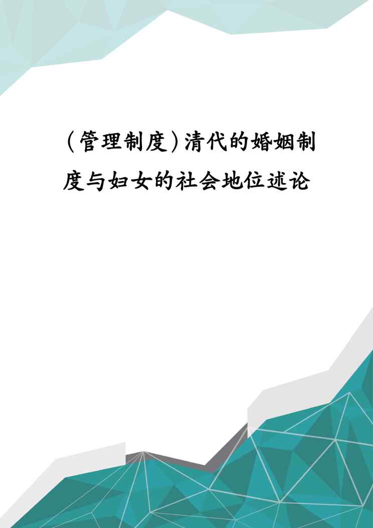 本站资深用户发布了最新的《(管理制度)清代的婚姻制度与妇女的社会地位述论》文档,以下内容为预览,详细内容可下载阅读。 声明:本站所有文章,如无特殊说明或标注,均为本站原创发布。任何个人或组织,在未征得本站同意时,禁止复制、盗用、采集、发布本站内容到任何网站、书籍等各类媒体平台。如若本站内容侵犯了原著者的合法权益,可联系我们进行处理。