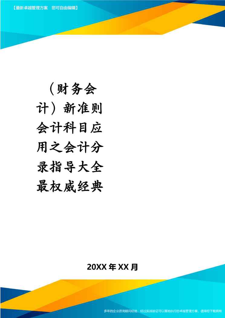 本站资深用户发布了最新的《(财务会计)新准则会计科目应用之会计分录指导大全最权威经典》文档,以下内容为预览,详细内容可下载阅读。