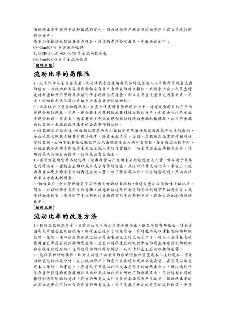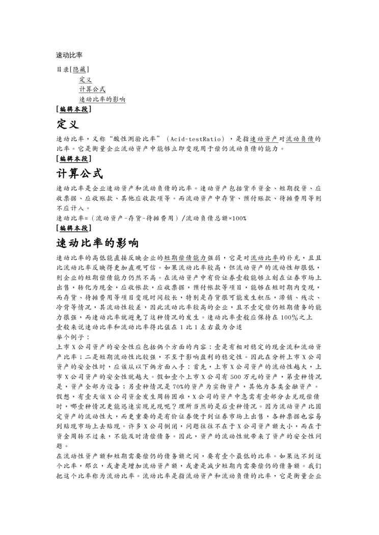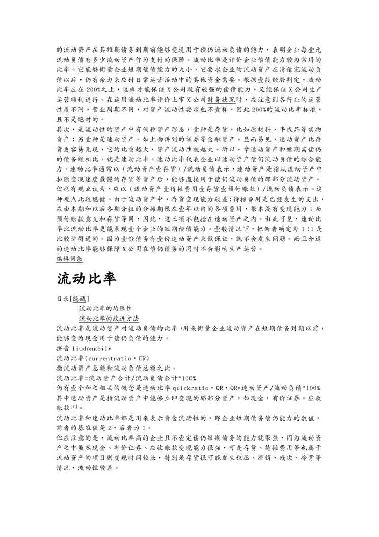 本站资深用户发布了最新的《(财务知识)财务各种比例》文档,以下内容为预览,详细内容可下载阅读。 声明:本站所有文章,如无特殊说明或标注,均为本站原创发布。任何个人或组织,在未征得本站同意时,禁止复制、盗用、采集、发布本站内容到任何网站、书籍等各类媒体平台。如若本站内容侵犯了原著者的合法权益,可联系我们进行处理。