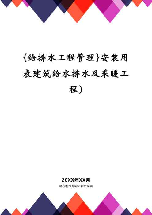 不久前,最新文档《{给排水工程管理}安装用表建筑给水排水及采暖工程)》全文正式在本站发布,感兴趣的用户可以下载阅读。 声明:本站所有文章,如无特殊说明或标注,均为本站原创发布。任何个人或组织,在未征得本站同意时,禁止复制、盗用、采集、发布本站内容到任何网站、书籍等各类媒体平台。如若本站内容侵犯了原著者的合法权益,可联系我们进行处理。