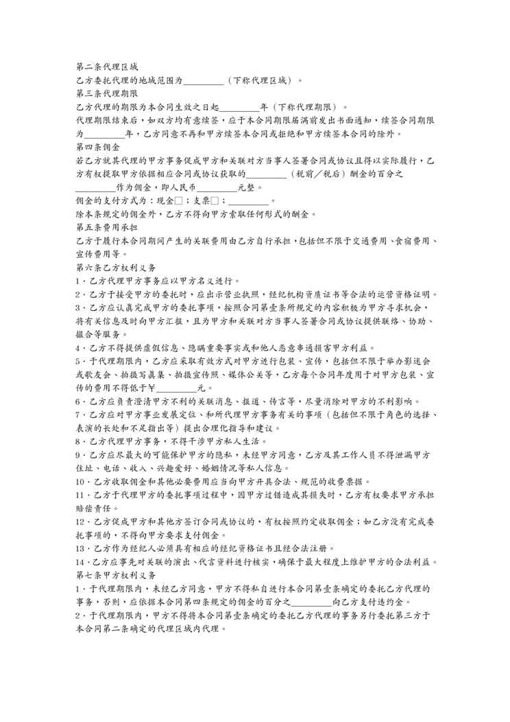 本站资深用户发布了最新的《(合同知识)演出经纪合同》文档,以下内容为预览,详细内容可下载阅读。 声明:本站所有文章,如无特殊说明或标注,均为本站原创发布。任何个人或组织,在未征得本站同意时,禁止复制、盗用、采集、发布本站内容到任何网站、书籍等各类媒体平台。如若本站内容侵犯了原著者的合法权益,可联系我们进行处理。