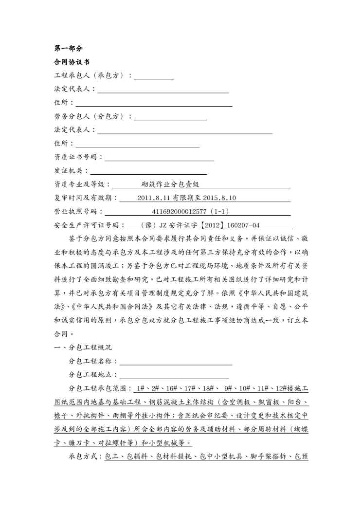本站资深用户发布了最新的《(工程合同)结构工程劳务分包合同》文档,以下内容为预览,详细内容可下载阅读。 声明:本站所有文章,如无特殊说明或标注,均为本站原创发布。任何个人或组织,在未征得本站同意时,禁止复制、盗用、采集、发布本站内容到任何网站、书籍等各类媒体平台。如若本站内容侵犯了原著者的合法权益,可联系我们进行处理。