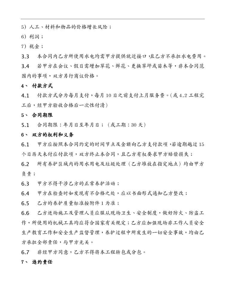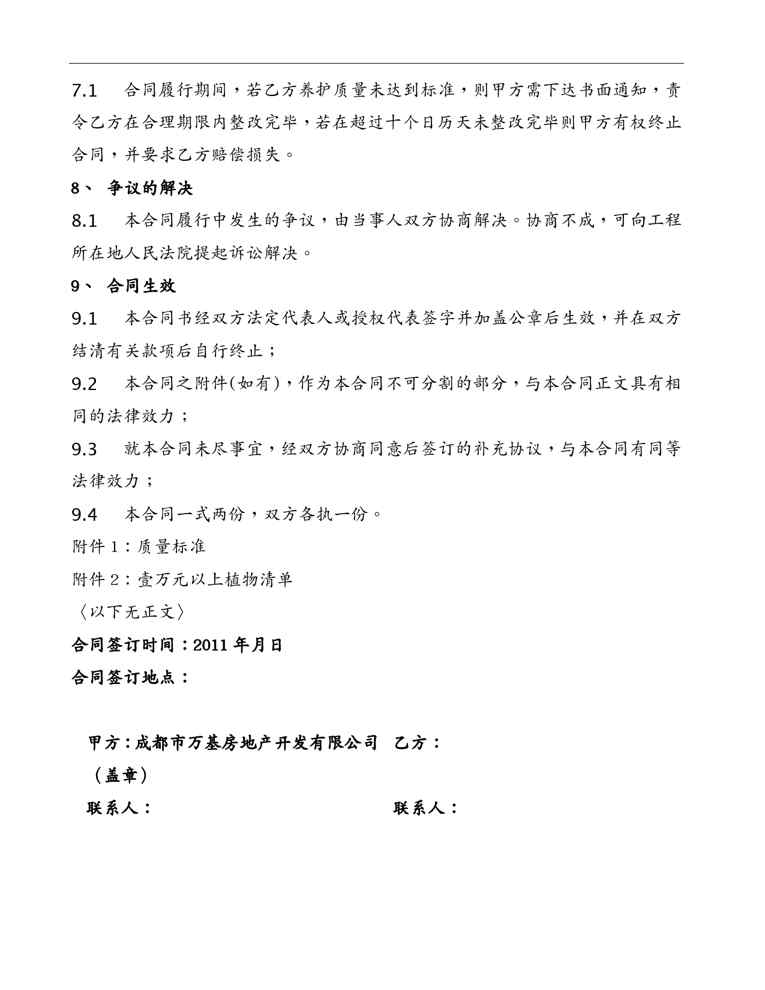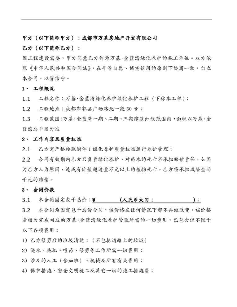本站资深用户发布了最新的《(工程合同)绿化工程养护合同》文档,以下内容为预览,详细内容可下载阅读。 声明:本站所有文章,如无特殊说明或标注,均为本站原创发布。任何个人或组织,在未征得本站同意时,禁止复制、盗用、采集、发布本站内容到任何网站、书籍等各类媒体平台。如若本站内容侵犯了原著者的合法权益,可联系我们进行处理。