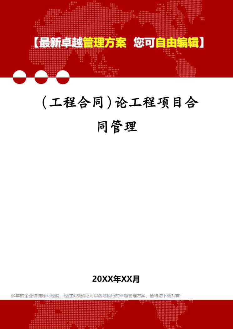不久前,最新文档《(工程合同)论工程项目合同管理》全文正式在本站发布,感兴趣的用户可以下载阅读。 声明:本站所有文章,如无特殊说明或标注,均为本站原创发布。任何个人或组织,在未征得本站同意时,禁止复制、盗用、采集、发布本站内容到任何网站、书籍等各类媒体平台。如若本站内容侵犯了原著者的合法权益,可联系我们进行处理。