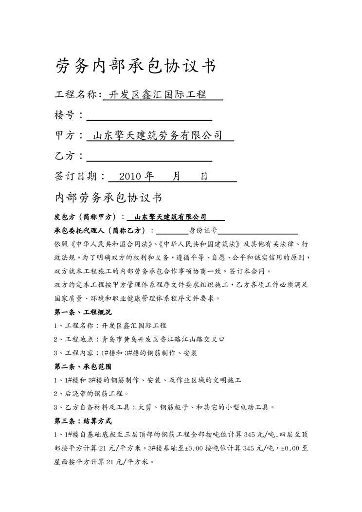 不久前,最新文档《(工程合同)钢筋工程劳务合同》全文正式在本站发布,感兴趣的用户可以下载阅读。 声明:本站所有文章,如无特殊说明或标注,均为本站原创发布。任何个人或组织,在未征得本站同意时,禁止复制、盗用、采集、发布本站内容到任何网站、书籍等各类媒体平台。如若本站内容侵犯了原著者的合法权益,可联系我们进行处理。
