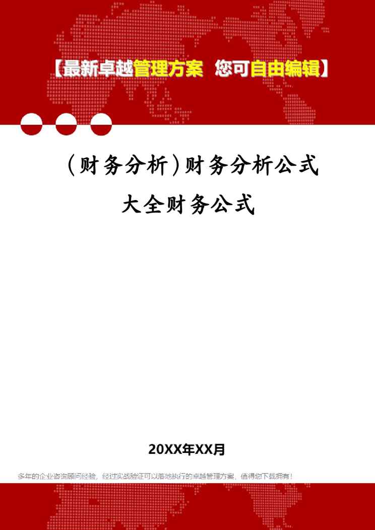 本站正式发布了《(财务分析)财务分析公式大全财务公式》文档,文档详细内容可下载阅读。 声明:本站所有文章,如无特殊说明或标注,均为本站原创发布。任何个人或组织,在未征得本站同意时,禁止复制、盗用、采集、发布本站内容到任何网站、书籍等各类媒体平台。如若本站内容侵犯了原著者的合法权益,可联系我们进行处理。