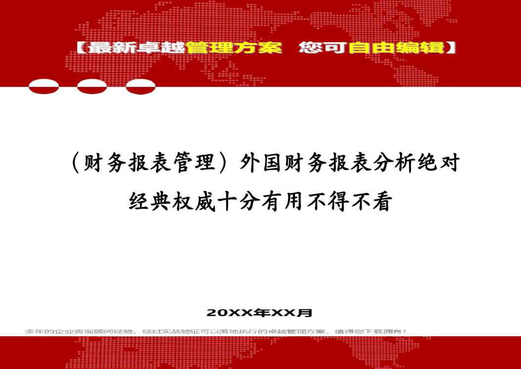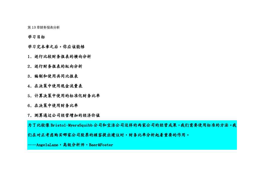 本站资深用户发布了最新的《(财务报表管理)外国财务报表分析绝对经典权威十分有用不得不看》文档,以下内容为预览,详细内容可下载阅读。 声明:本站所有文章,如无特殊说明或标注,均为本站原创发布。任何个人或组织,在未征得本站同意时,禁止复制、盗用、采集、发布本站内容到任何网站、书籍等各类媒体平台。如若本站内容侵犯了原著者的合法权益,可联系我们进行处理。