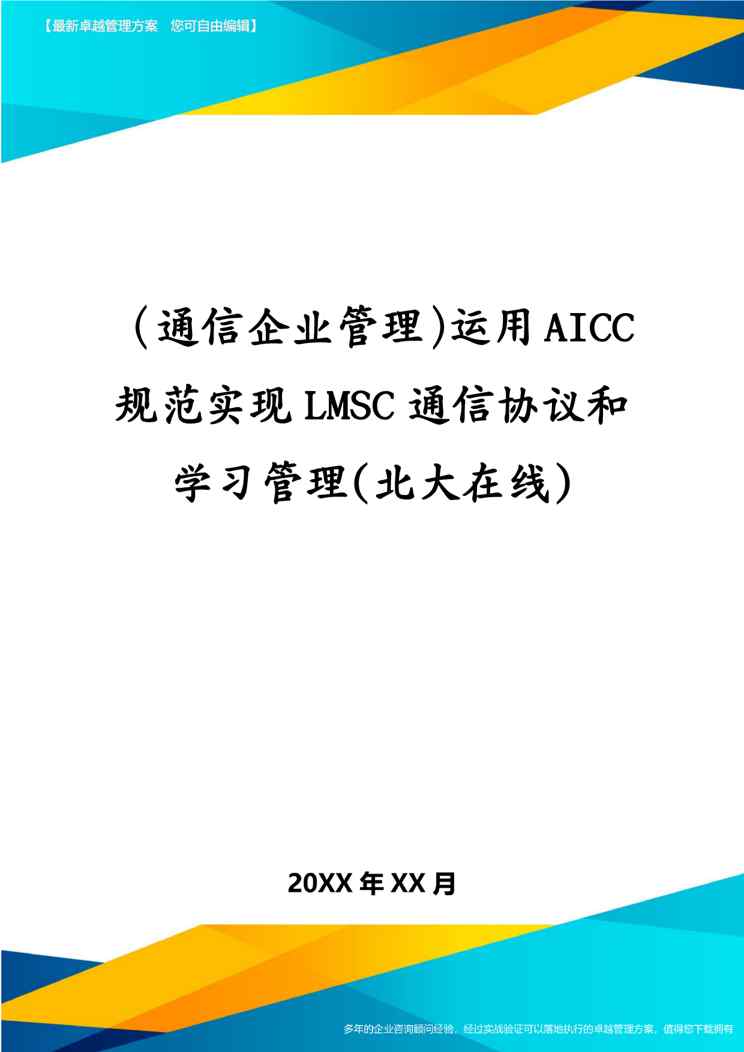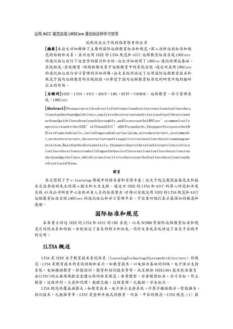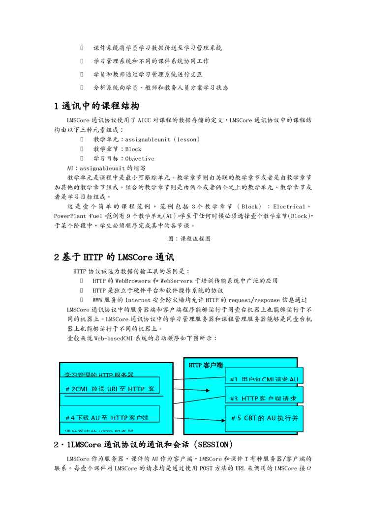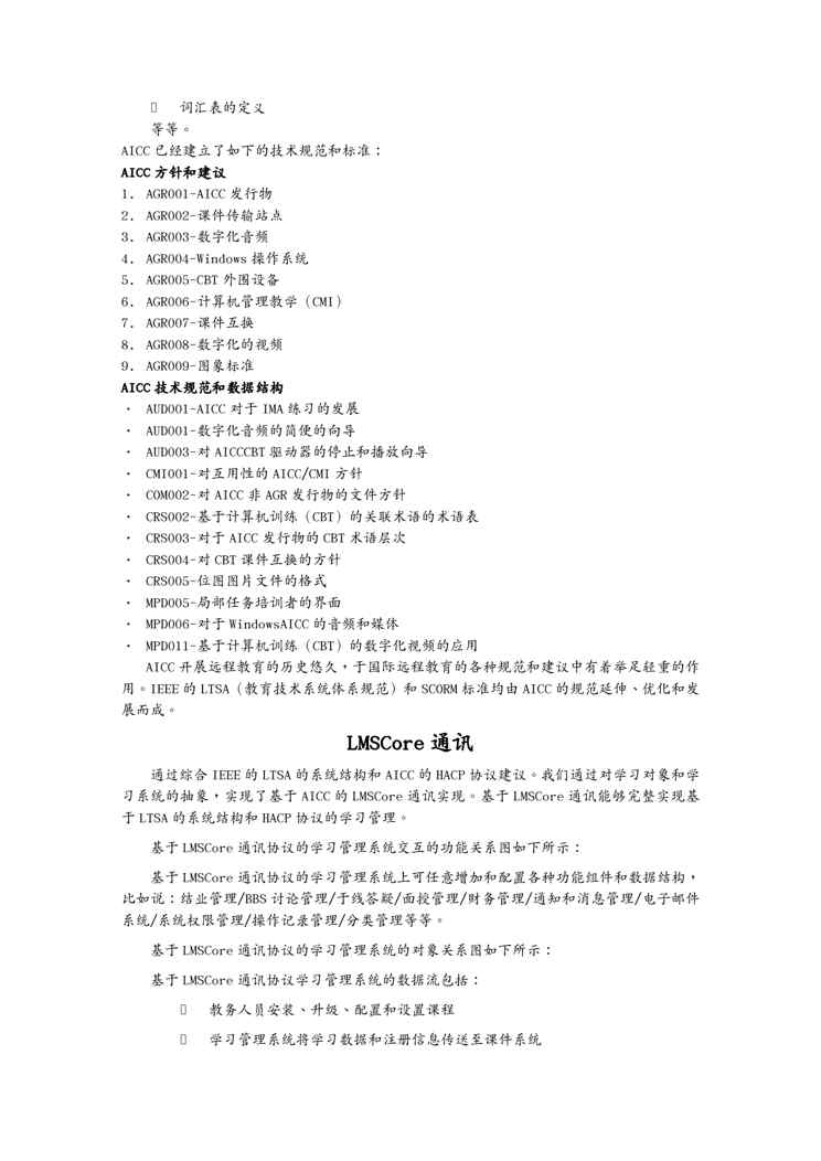 本站资深用户发布了最新的《(通信企业管理)运用AICC规范实现LMSC通信协议和学习管理(北大在线)》文档,以下内容为预览,详细内容可下载阅读。 声明:本站所有文章,如无特殊说明或标注,均为本站原创发布。任何个人或组织,在未征得本站同意时,禁止复制、盗用、采集、发布本站内容到任何网站、书籍等各类媒体平台。如若本站内容侵犯了原著者的合法权益,可联系我们进行处理。