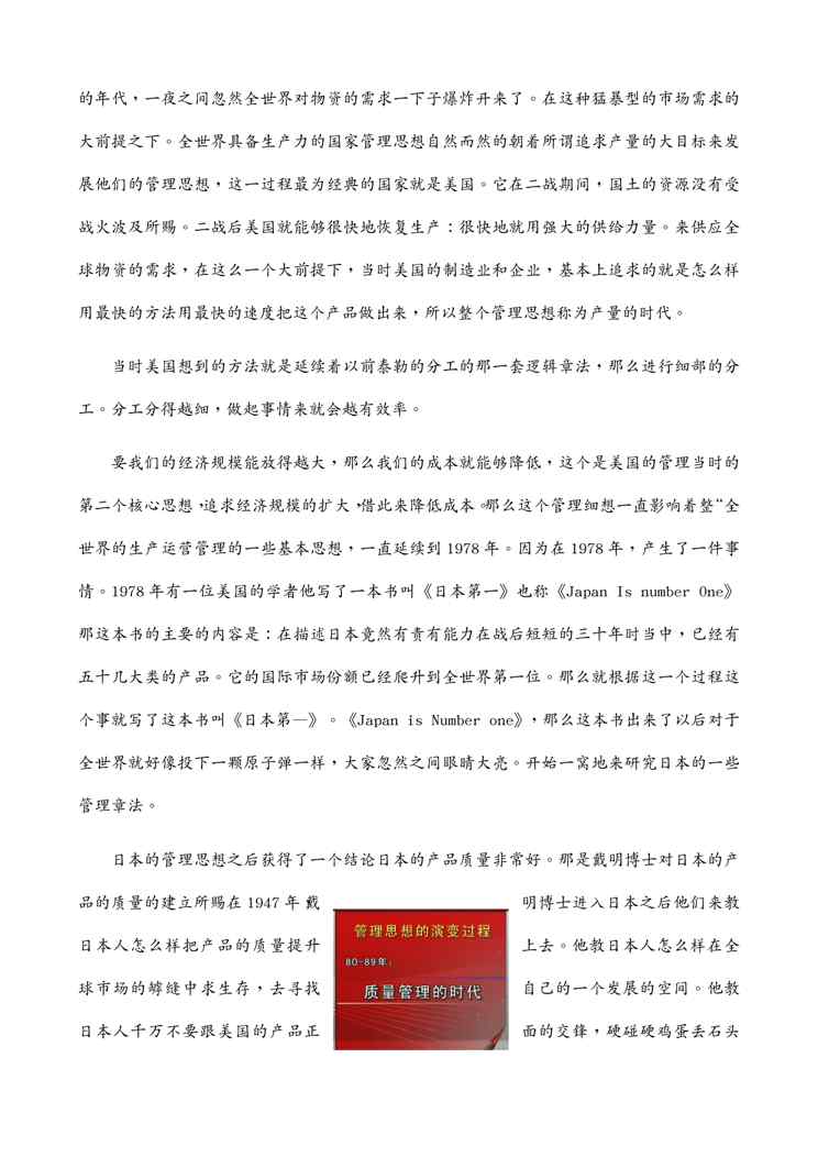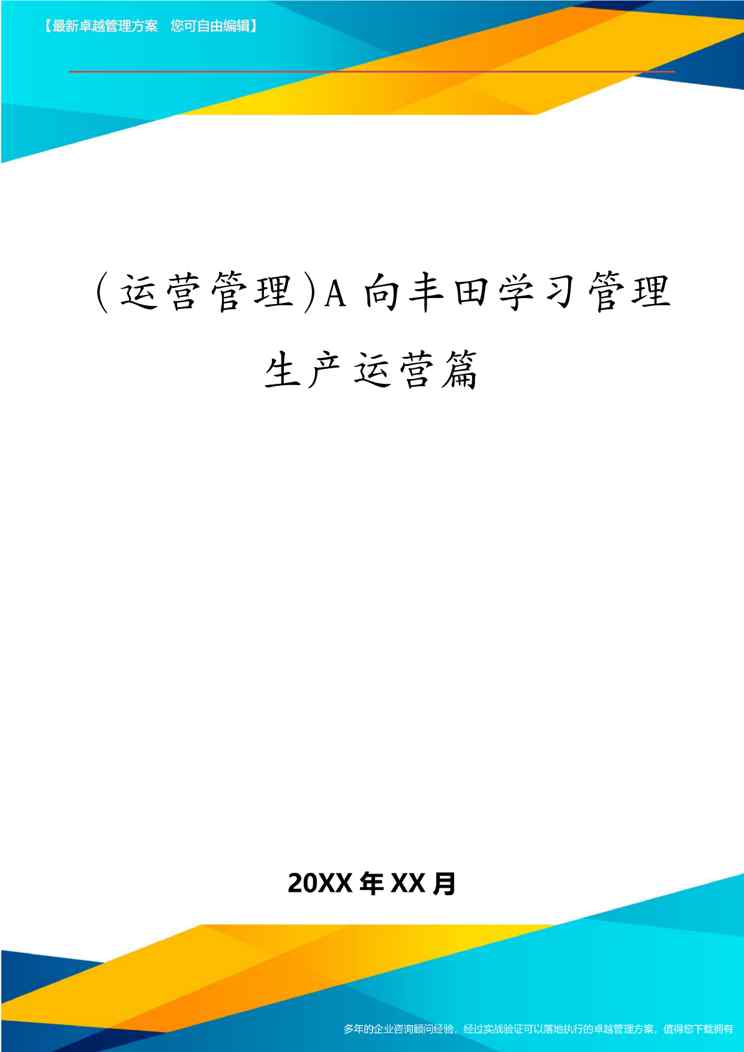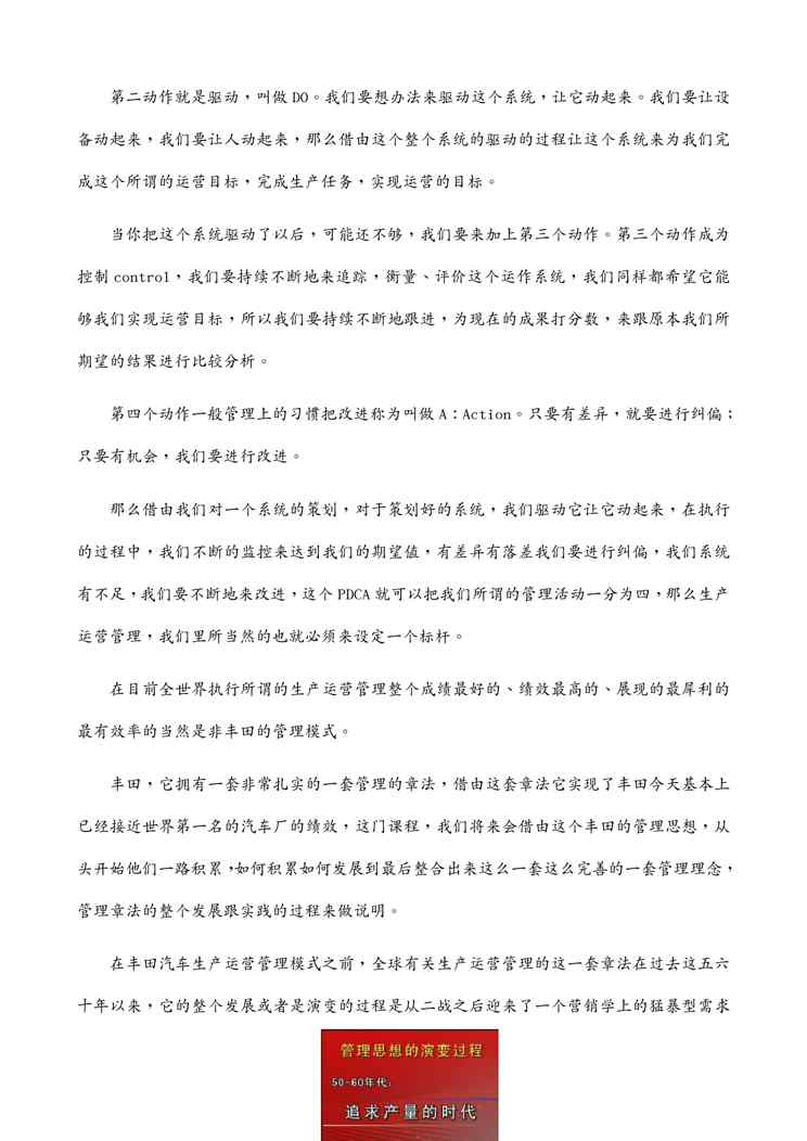 本站资深用户发布了最新的《(运营管理)A向丰田学习管理生产运营篇》文档,以下内容为预览,详细内容可下载阅读。 声明:本站所有文章,如无特殊说明或标注,均为本站原创发布。任何个人或组织,在未征得本站同意时,禁止复制、盗用、采集、发布本站内容到任何网站、书籍等各类媒体平台。如若本站内容侵犯了原著者的合法权益,可联系我们进行处理。