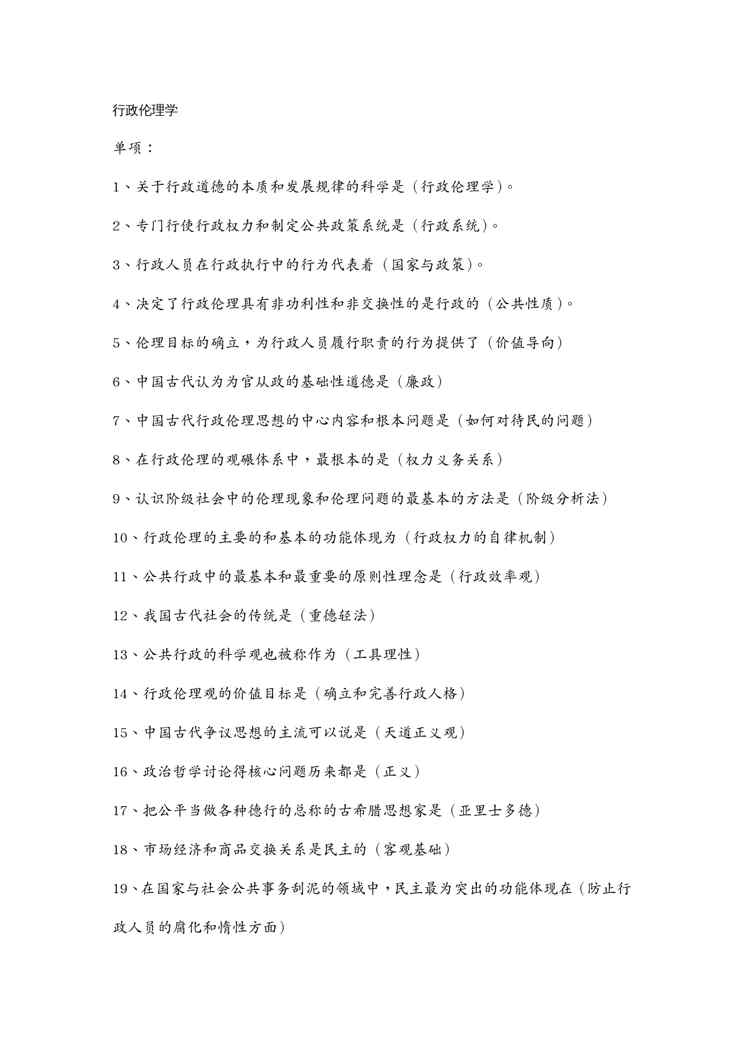 本站资深用户发布了最新的《(行政管理)《行政伦理学》》文档,以下内容为预览,详细内容可下载阅读。 声明:本站所有文章,如无特殊说明或标注,均为本站原创发布。任何个人或组织,在未征得本站同意时,禁止复制、盗用、采集、发布本站内容到任何网站、书籍等各类媒体平台。如若本站内容侵犯了原著者的合法权益,可联系我们进行处理。