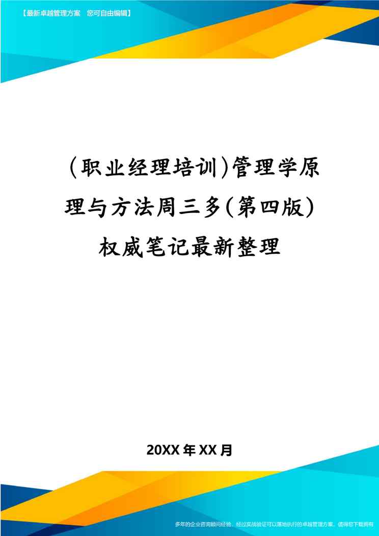 本站资深用户发布了最新的《(职业经理培训)管理学原理与方法周三多(第四版)权威笔记最新整理》文档,以下内容为预览,详细内容可下载阅读。 声明:本站所有文章,如无特殊说明或标注,均为本站原创发布。任何个人或组织,在未征得本站同意时,禁止复制、盗用、采集、发布本站内容到任何网站、书籍等各类媒体平台。如若本站内容侵犯了原著者的合法权益,可联系我们进行处理。
