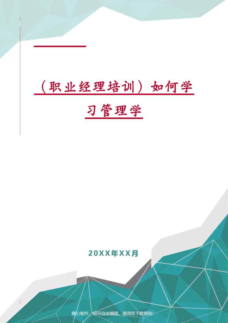 本站资深用户发布了最新的《(职业经理培训)如何学习管理学》文档,以下内容为预览,详细内容可下载阅读。