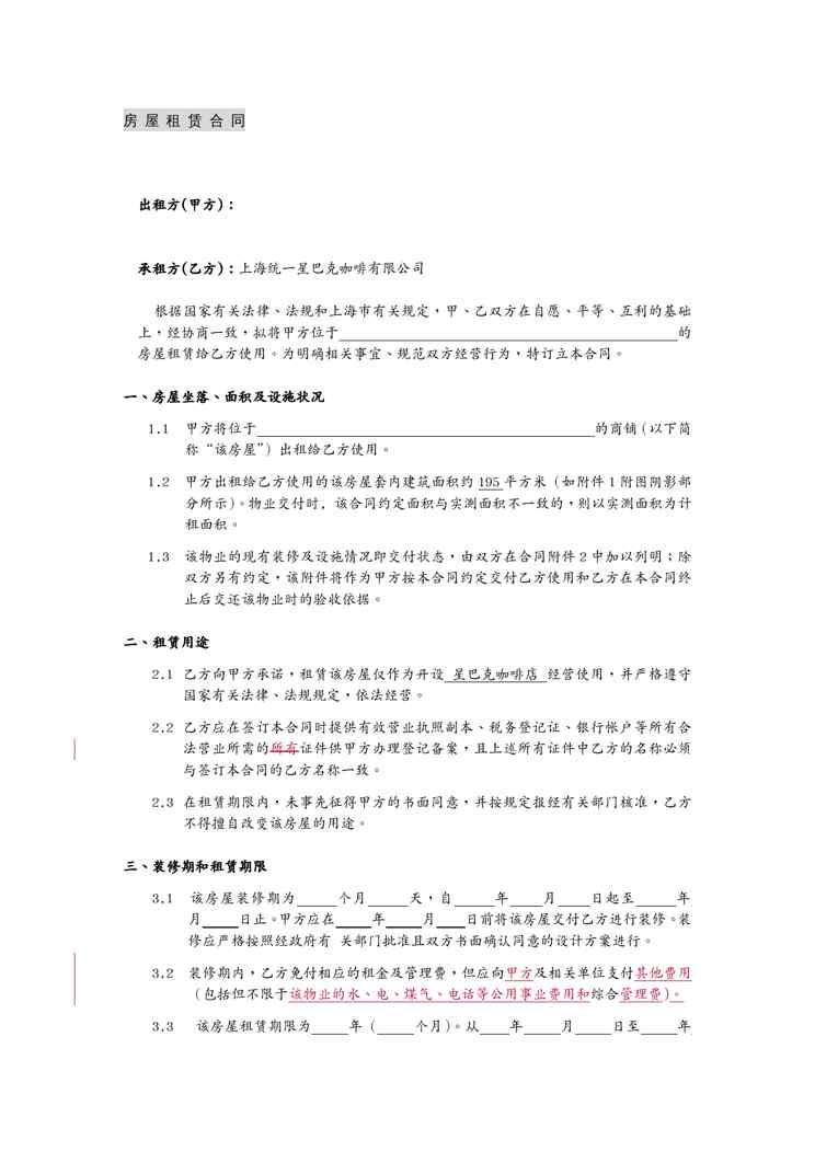 本站正式发布了《(租赁合同)星巴克合同房屋租赁合同》文档,文档详细内容可下载阅读。 声明:本站所有文章,如无特殊说明或标注,均为本站原创发布。任何个人或组织,在未征得本站同意时,禁止复制、盗用、采集、发布本站内容到任何网站、书籍等各类媒体平台。如若本站内容侵犯了原著者的合法权益,可联系我们进行处理。