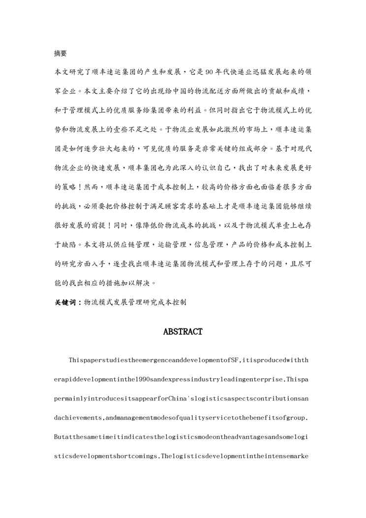 本站资深用户发布了最新的《(物流管理)顺风物流的模式研究》文档,以下内容为预览,详细内容可下载阅读。 声明:本站所有文章,如无特殊说明或标注,均为本站原创发布。任何个人或组织,在未征得本站同意时,禁止复制、盗用、采集、发布本站内容到任何网站、书籍等各类媒体平台。如若本站内容侵犯了原著者的合法权益,可联系我们进行处理。