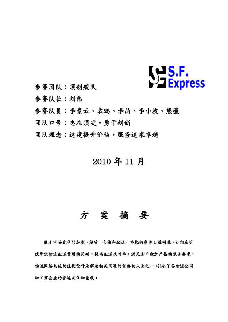 不久前,最新文档《(物流管理)顺丰杯物流设计大赛复赛优秀作品》全文正式在本站发布,感兴趣的用户可以下载阅读。 声明:本站所有文章,如无特殊说明或标注,均为本站原创发布。任何个人或组织,在未征得本站同意时,禁止复制、盗用、采集、发布本站内容到任何网站、书籍等各类媒体平台。如若本站内容侵犯了原著者的合法权益,可联系我们进行处理。