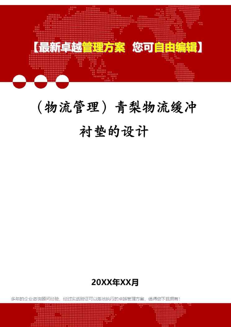 不久前,最新文档《(物流管理)青梨物流缓冲衬垫的设计》全文正式在本站发布,感兴趣的用户可以下载阅读。 声明:本站所有文章,如无特殊说明或标注,均为本站原创发布。任何个人或组织,在未征得本站同意时,禁止复制、盗用、采集、发布本站内容到任何网站、书籍等各类媒体平台。如若本站内容侵犯了原著者的合法权益,可联系我们进行处理。
