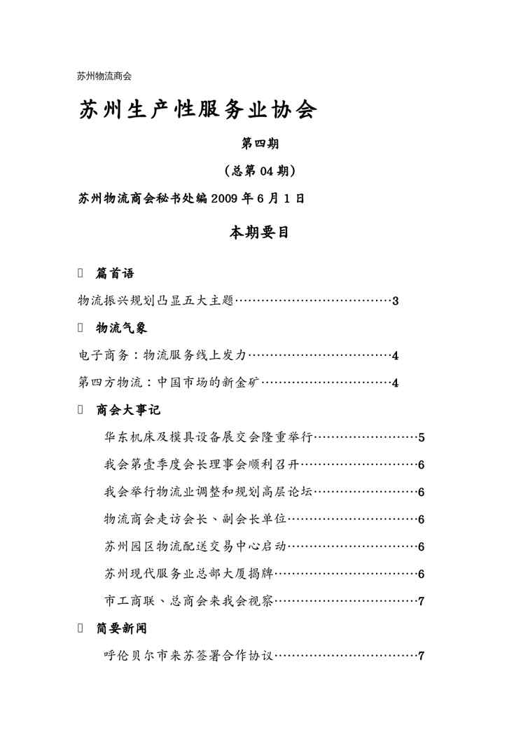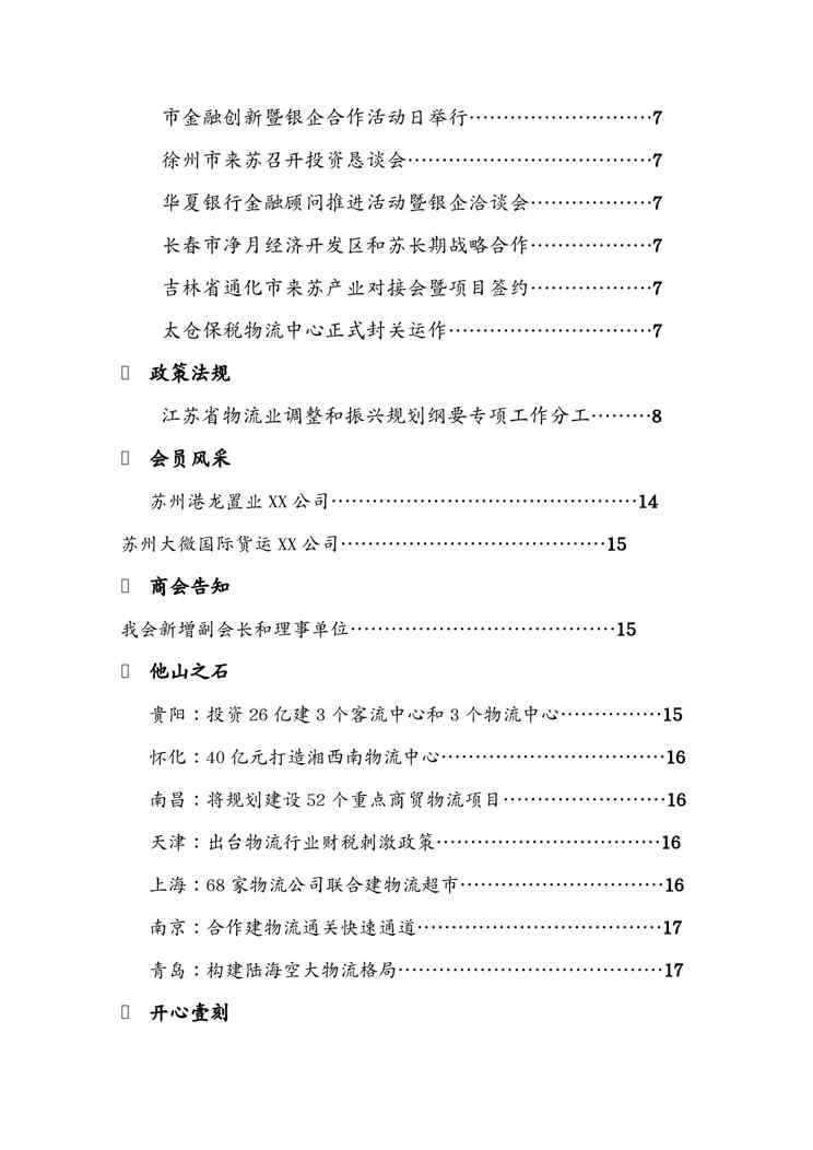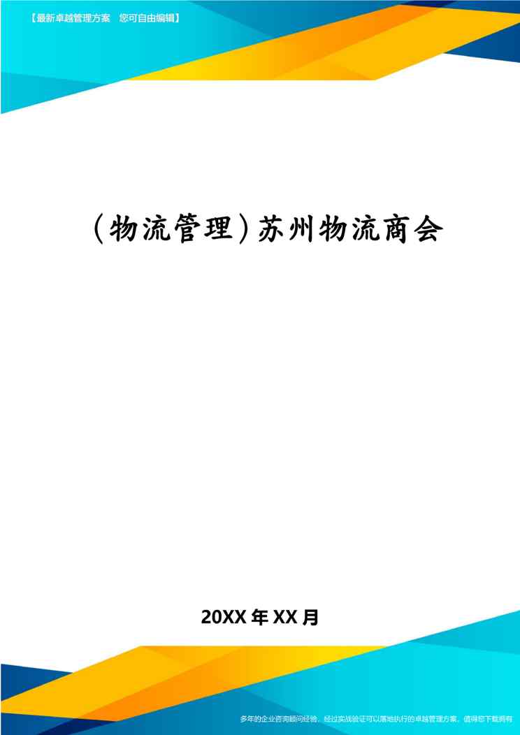 不久前,最新文档《(物流管理)苏州物流商会》全文正式在本站发布,感兴趣的用户可以下载阅读。 声明:本站所有文章,如无特殊说明或标注,均为本站原创发布。任何个人或组织,在未征得本站同意时,禁止复制、盗用、采集、发布本站内容到任何网站、书籍等各类媒体平台。如若本站内容侵犯了原著者的合法权益,可联系我们进行处理。
