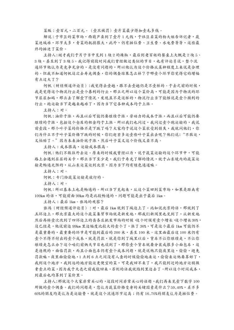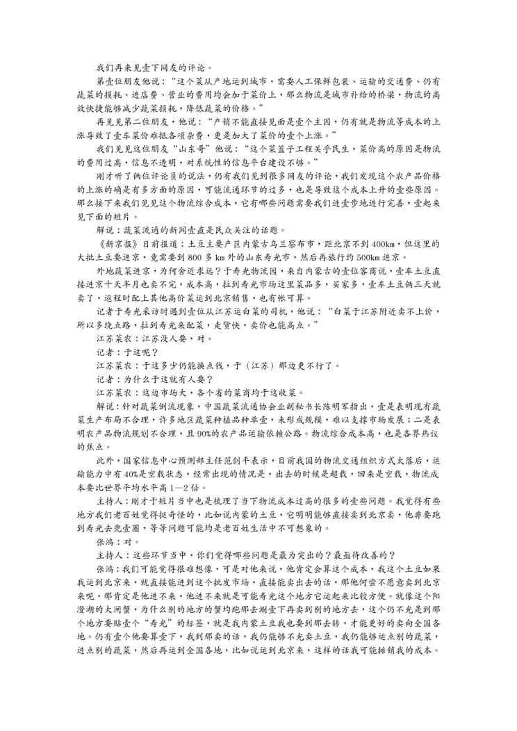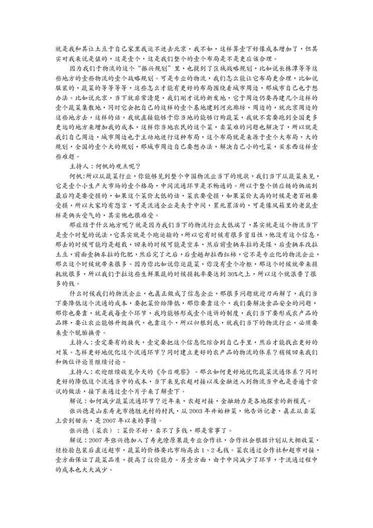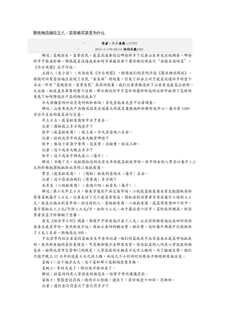 本站正式发布了《(物流管理)聚焦物流顽症之八卖菜难买菜贵为什么》文档,文档详细内容可下载阅读。 声明:本站所有文章,如无特殊说明或标注,均为本站原创发布。任何个人或组织,在未征得本站同意时,禁止复制、盗用、采集、发布本站内容到任何网站、书籍等各类媒体平台。如若本站内容侵犯了原著者的合法权益,可联系我们进行处理。
