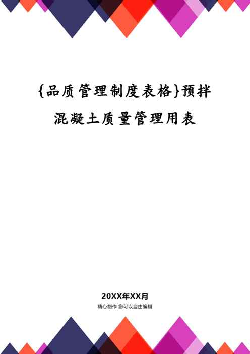 本站资深用户发布了最新的《{品质管理制度表格}预拌混凝土质量管理用表》文档,以下内容为预览,详细内容可下载阅读。 声明:本站所有文章,如无特殊说明或标注,均为本站原创发布。任何个人或组织,在未征得本站同意时,禁止复制、盗用、采集、发布本站内容到任何网站、书籍等各类媒体平台。如若本站内容侵犯了原著者的合法权益,可联系我们进行处理。