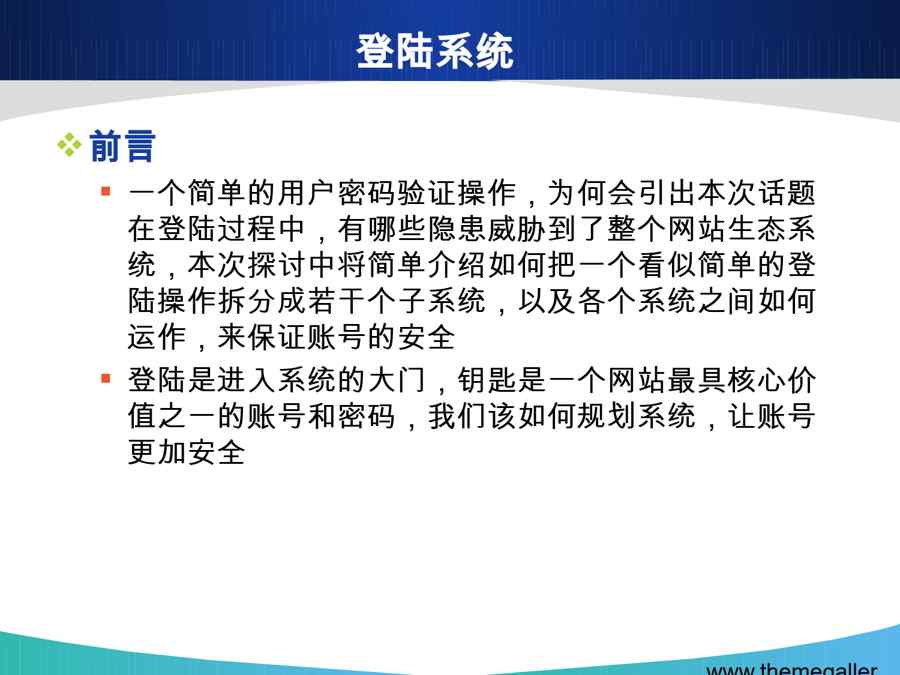 本站资深用户发布了最新的《浅谈登陆保护系统》文档,以下内容为预览,详细内容可下载阅读。 声明:本站所有文章,如无特殊说明或标注,均为本站原创发布。任何个人或组织,在未征得本站同意时,禁止复制、盗用、采集、发布本站内容到任何网站、书籍等各类媒体平台。如若本站内容侵犯了原著者的合法权益,可联系我们进行处理。