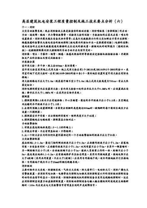 本站正式发布了《{品质管理质量控制}高层建筑机电安装工程质量控制及施工技术要点分析六》文档,文档详细内容可下载阅读。 声明:本站所有文章,如无特殊说明或标注,均为本站原创发布。任何个人或组织,在未征得本站同意时,禁止复制、盗用、采集、发布本站内容到任何网站、书籍等各类媒体平台。如若本站内容侵犯了原著者的合法权益,可联系我们进行处理。