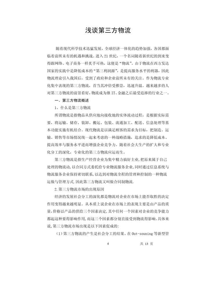 本站正式发布了《浅谈第三方物流》文档,文档详细内容可下载阅读。 声明:本站所有文章,如无特殊说明或标注,均为本站原创发布。任何个人或组织,在未征得本站同意时,禁止复制、盗用、采集、发布本站内容到任何网站、书籍等各类媒体平台。如若本站内容侵犯了原著者的合法权益,可联系我们进行处理。