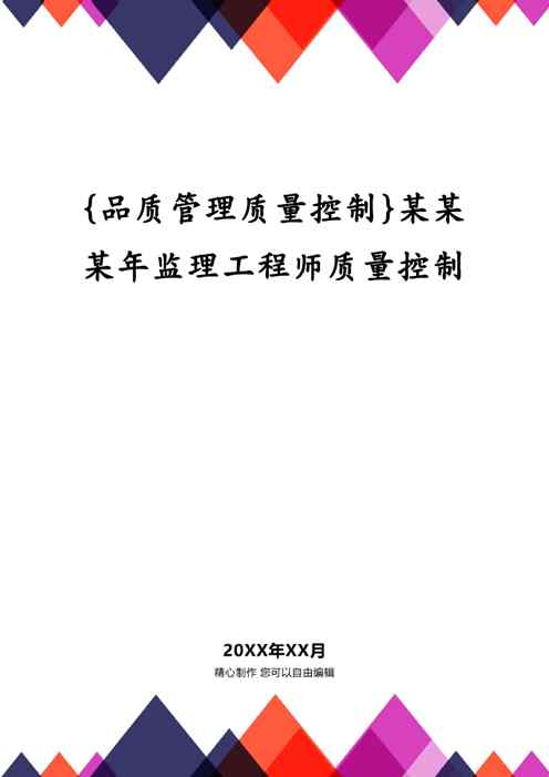 本站正式发布了《{品质管理质量控制}某某某年监理工程师质量控制》文档,文档详细内容可下载阅读。 声明:本站所有文章,如无特殊说明或标注,均为本站原创发布。任何个人或组织,在未征得本站同意时,禁止复制、盗用、采集、发布本站内容到任何网站、书籍等各类媒体平台。如若本站内容侵犯了原著者的合法权益,可联系我们进行处理。