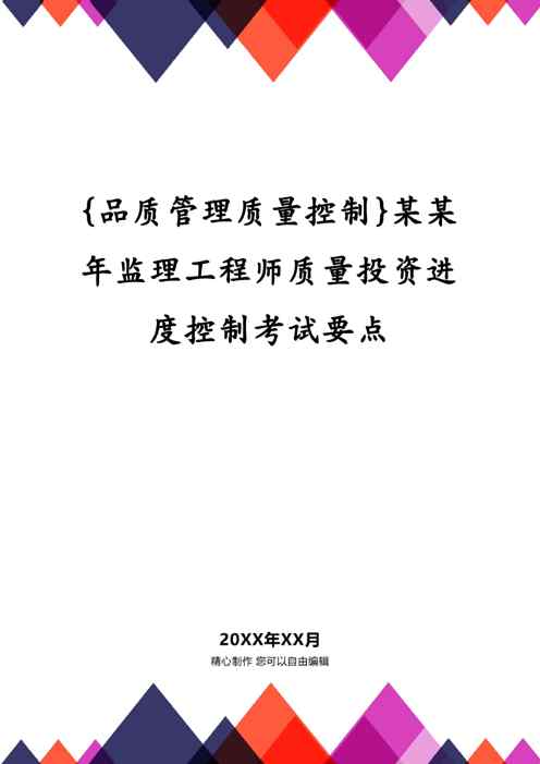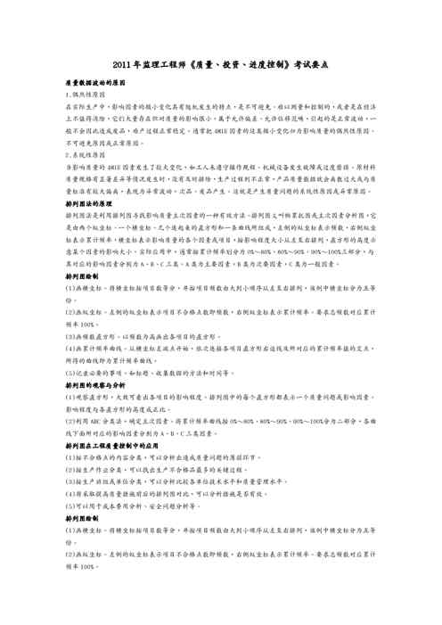 本站资深用户发布了最新的《{品质管理质量控制}某某年监理工程师质量投资进度控制考试要点》文档,以下内容为预览,详细内容可下载阅读。 声明:本站所有文章,如无特殊说明或标注,均为本站原创发布。任何个人或组织,在未征得本站同意时,禁止复制、盗用、采集、发布本站内容到任何网站、书籍等各类媒体平台。如若本站内容侵犯了原著者的合法权益,可联系我们进行处理。
