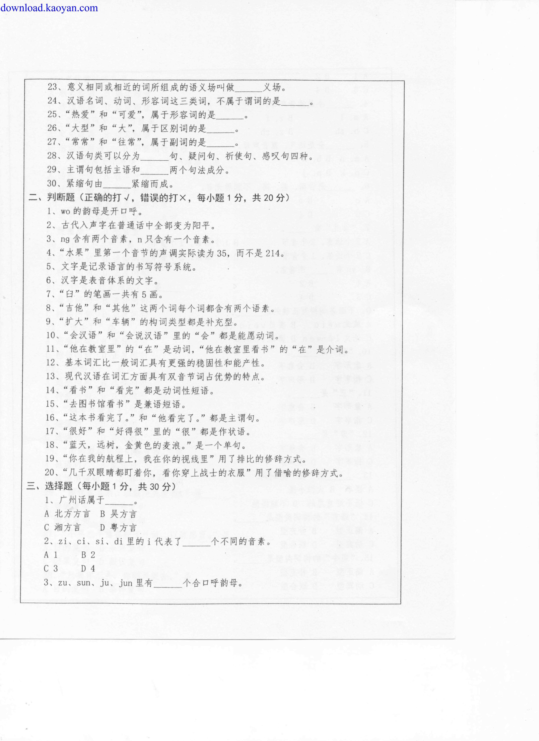 本站资深用户发布了最新的《西南大学354汉语基础考研试题》文档,以下内容为预览,详细内容可下载阅读。 声明:本站所有文章,如无特殊说明或标注,均为本站原创发布。任何个人或组织,在未征得本站同意时,禁止复制、盗用、采集、发布本站内容到任何网站、书籍等各类媒体平台。如若本站内容侵犯了原著者的合法权益,可联系我们进行处理。
