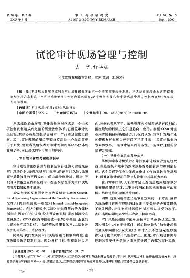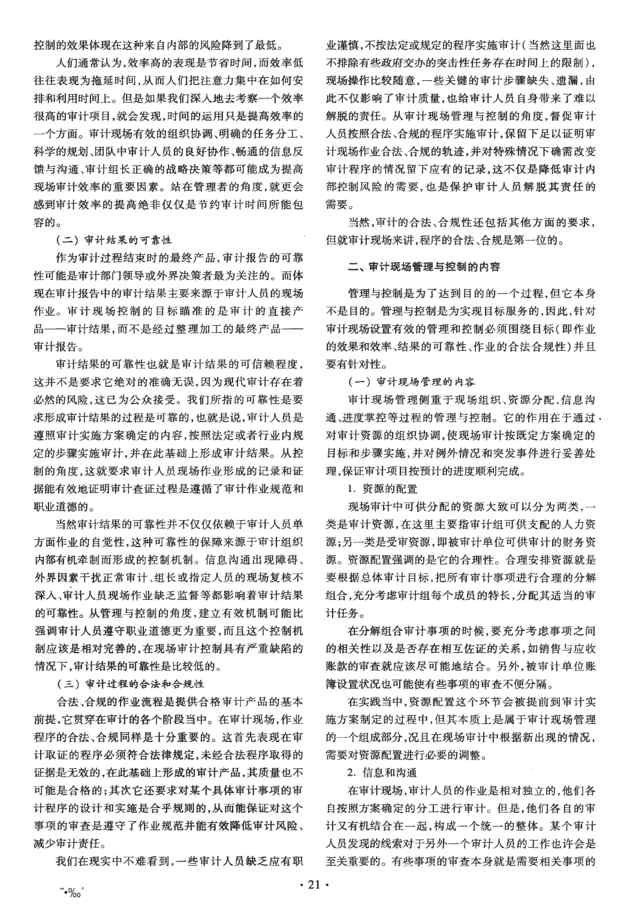 本站资深用户发布了最新的《试论审计现场管理与控制》文档,以下内容为预览,详细内容可下载阅读。 声明:本站所有文章,如无特殊说明或标注,均为本站原创发布。任何个人或组织,在未征得本站同意时,禁止复制、盗用、采集、发布本站内容到任何网站、书籍等各类媒体平台。如若本站内容侵犯了原著者的合法权益,可联系我们进行处理。