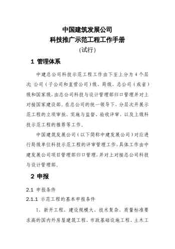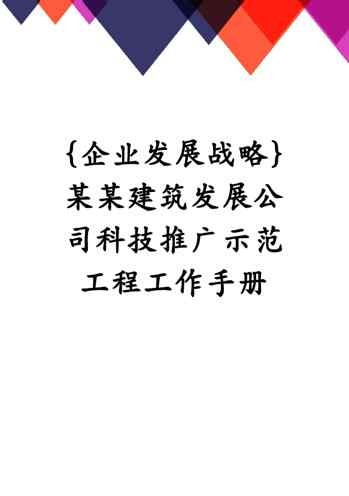 本站资深用户发布了最新的《{企业发展战略}某某建筑发展公司科技推广示范工程工作手册》文档,以下内容为预览,详细内容可下载阅读。 声明:本站所有文章,如无特殊说明或标注,均为本站原创发布。任何个人或组织,在未征得本站同意时,禁止复制、盗用、采集、发布本站内容到任何网站、书籍等各类媒体平台。如若本站内容侵犯了原著者的合法权益,可联系我们进行处理。