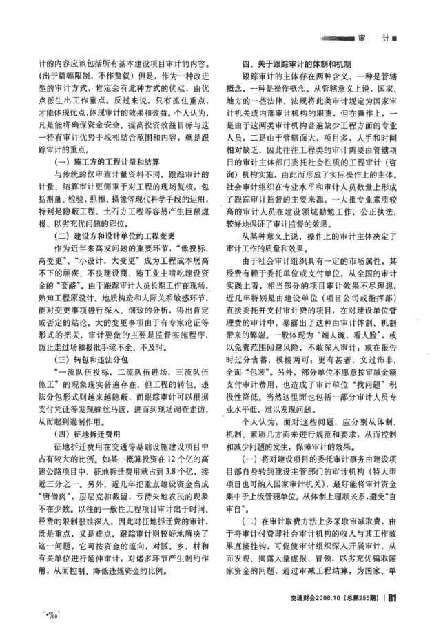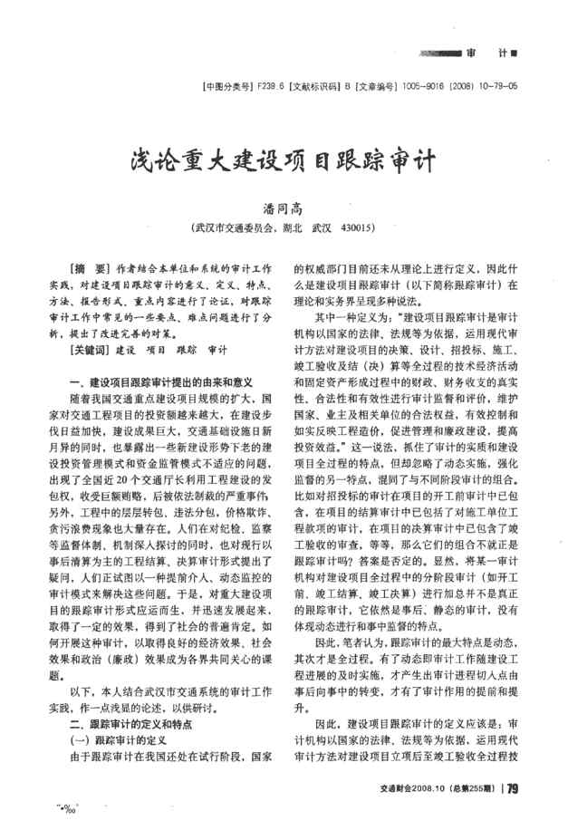 不久前,最新文档《浅论重大建设项目跟踪审计》全文正式在本站发布,感兴趣的用户可以下载阅读。 声明:本站所有文章,如无特殊说明或标注,均为本站原创发布。任何个人或组织,在未征得本站同意时,禁止复制、盗用、采集、发布本站内容到任何网站、书籍等各类媒体平台。如若本站内容侵犯了原著者的合法权益,可联系我们进行处理。