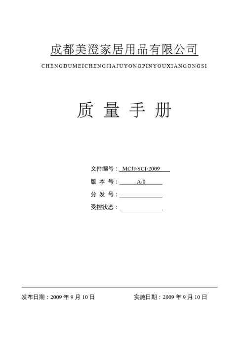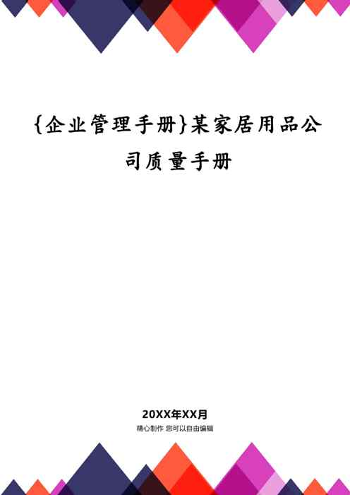 不久前,最新文档《{企业管理手册}某家居用品公司质量手册》全文正式在本站发布,感兴趣的用户可以下载阅读。 声明:本站所有文章,如无特殊说明或标注,均为本站原创发布。任何个人或组织,在未征得本站同意时,禁止复制、盗用、采集、发布本站内容到任何网站、书籍等各类媒体平台。如若本站内容侵犯了原著者的合法权益,可联系我们进行处理。