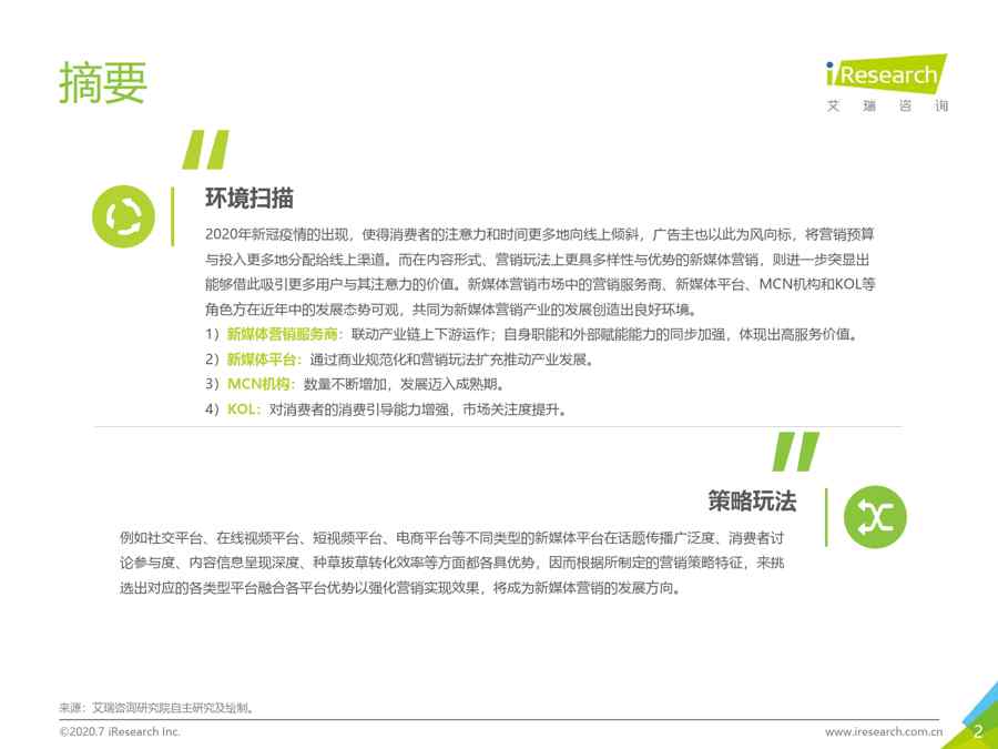 本站资深用户发布了最新的《艾瑞咨询:2020年中国新媒体营销策略白皮书》文档,以下内容为预览,详细内容可下载阅读。 声明:本站所有文章,如无特殊说明或标注,均为本站原创发布。任何个人或组织,在未征得本站同意时,禁止复制、盗用、采集、发布本站内容到任何网站、书籍等各类媒体平台。如若本站内容侵犯了原著者的合法权益,可联系我们进行处理。