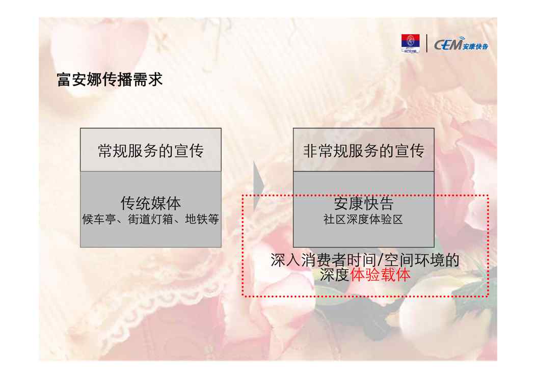 本站资深用户发布了最新的《富安娜社区深度推广方案》文档,以下内容为预览,详细内容可下载阅读。 声明:本站所有文章,如无特殊说明或标注,均为本站原创发布。任何个人或组织,在未征得本站同意时,禁止复制、盗用、采集、发布本站内容到任何网站、书籍等各类媒体平台。如若本站内容侵犯了原著者的合法权益,可联系我们进行处理。