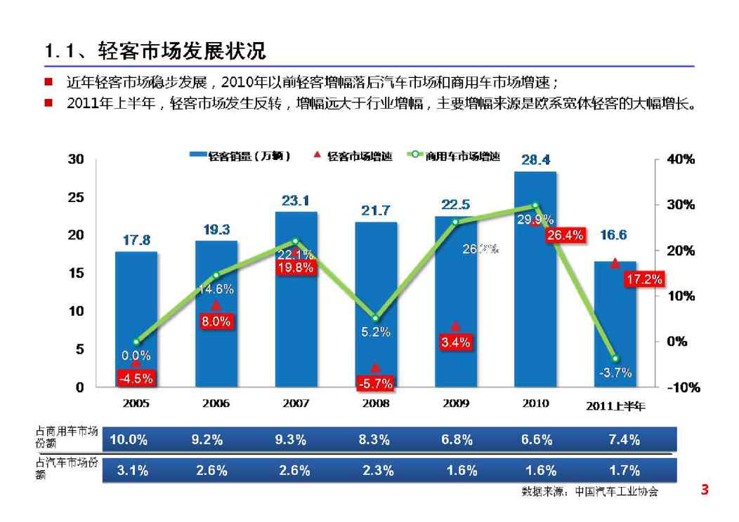 不久前,最新文档《南京依维柯汽车有限公司2011年轻型客车市场分析与预测》全文正式在本站发布,感兴趣的用户可以下载阅读。 声明:本站所有文章,如无特殊说明或标注,均为本站原创发布。任何个人或组织,在未征得本站同意时,禁止复制、盗用、采集、发布本站内容到任何网站、书籍等各类媒体平台。如若本站内容侵犯了原著者的合法权益,可联系我们进行处理。