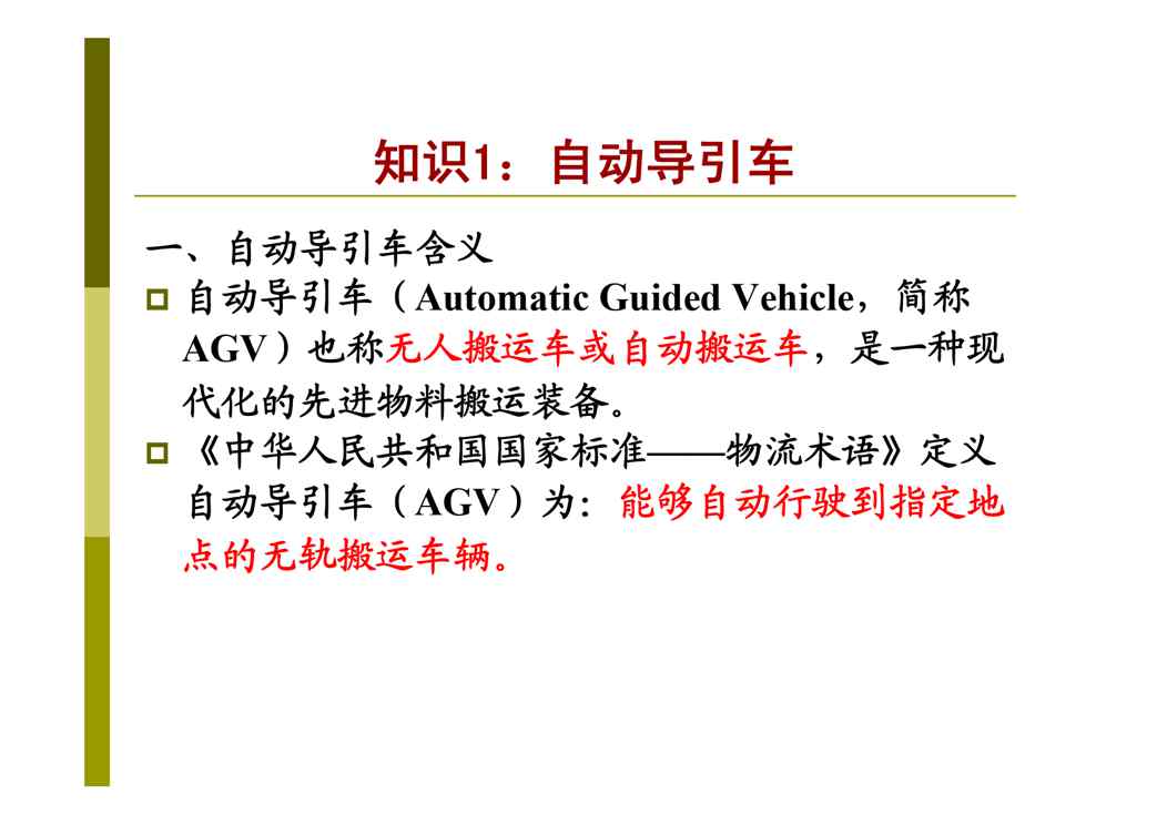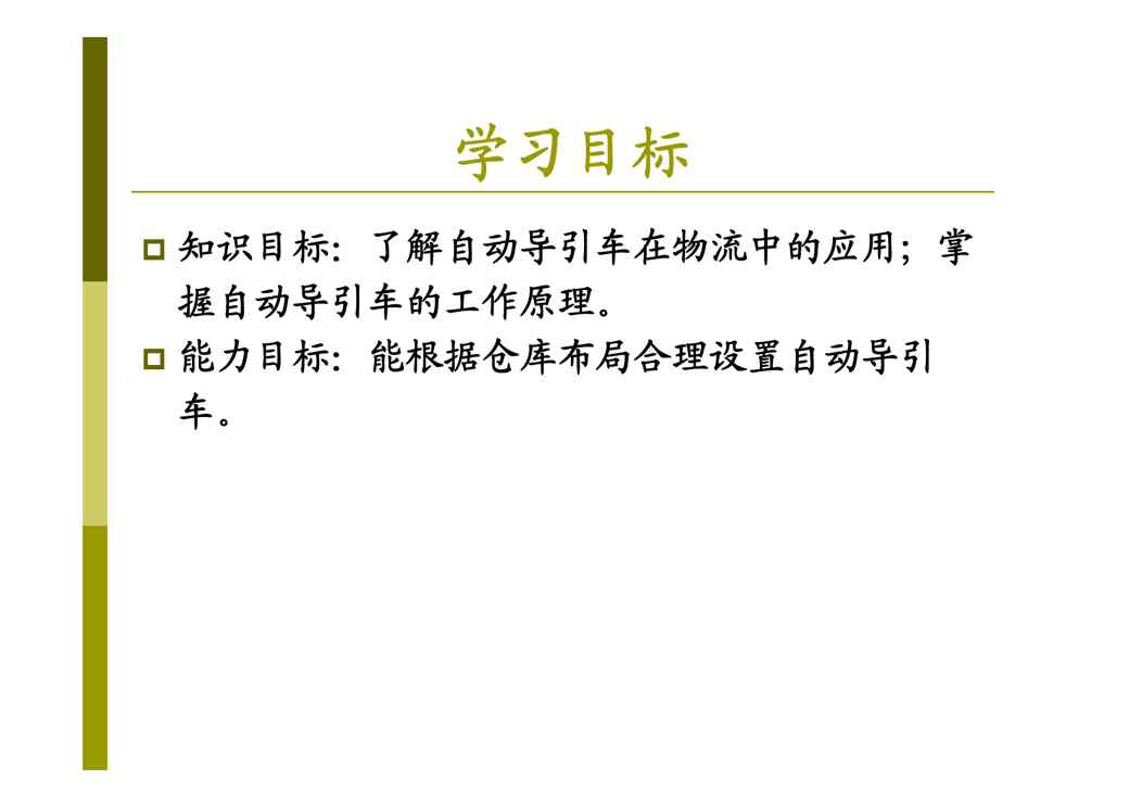 本站资深用户发布了最新的《现代物流装备与技术 第九章 物流智能装备与技术》文档,以下内容为预览,详细内容可下载阅读。 声明:本站所有文章,如无特殊说明或标注,均为本站原创发布。任何个人或组织,在未征得本站同意时,禁止复制、盗用、采集、发布本站内容到任何网站、书籍等各类媒体平台。如若本站内容侵犯了原著者的合法权益,可联系我们进行处理。