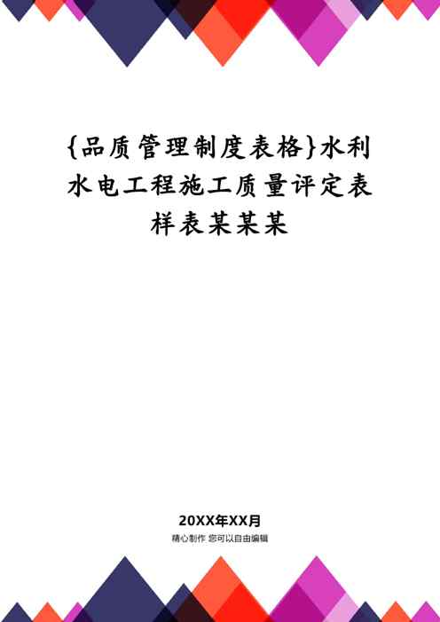 本站资深用户发布了最新的《{品质管理制度表格}水利水电工程施工质量评定表样表某某某》文档,以下内容为预览,详细内容可下载阅读。 声明:本站所有文章,如无特殊说明或标注,均为本站原创发布。任何个人或组织,在未征得本站同意时,禁止复制、盗用、采集、发布本站内容到任何网站、书籍等各类媒体平台。如若本站内容侵犯了原著者的合法权益,可联系我们进行处理。