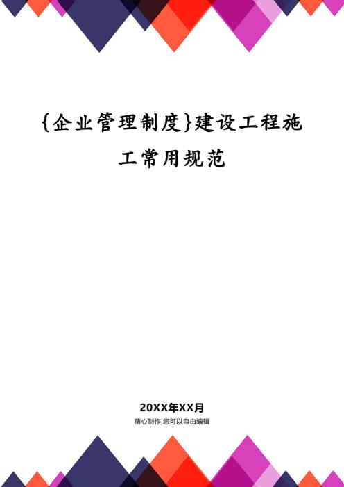 不久前,最新文档《{企业管理制度}建设工程施工常用规范》全文正式在本站发布,感兴趣的用户可以下载阅读。 声明:本站所有文章,如无特殊说明或标注,均为本站原创发布。任何个人或组织,在未征得本站同意时,禁止复制、盗用、采集、发布本站内容到任何网站、书籍等各类媒体平台。如若本站内容侵犯了原著者的合法权益,可联系我们进行处理。